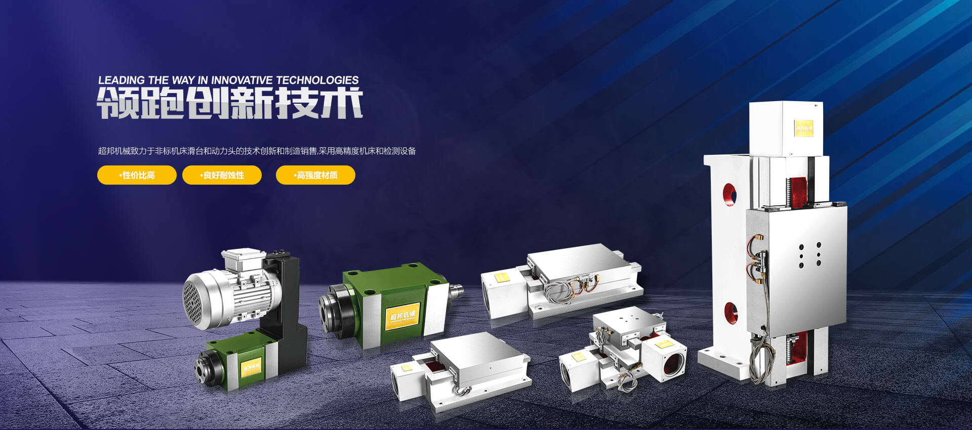 臺州市超邦機械設備制造有限公司是一家專業設計制造組合機床和數控滑臺的廠家。目前的主要產品有數控滑臺、機械滑臺、數控銑頭等,品種多,規格全,同時還為客戶設計各種非標的滑臺和銑頭。主打產品是數控滑臺,導軌表面經過高頻淬火,表面硬度可達到HRC52度以上。